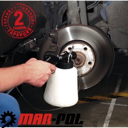 Инструмент за смяна на спирачна течност MARPOL е идеално допълнение към оборудването на всеки автосервиз. Устройството е универсално и лесно за използване. От едната страна то е свързано към мрежата за сгъстен въздух ( 1/4" вход ), а от другата - към отвора на спирачната система. Изсмукването н..