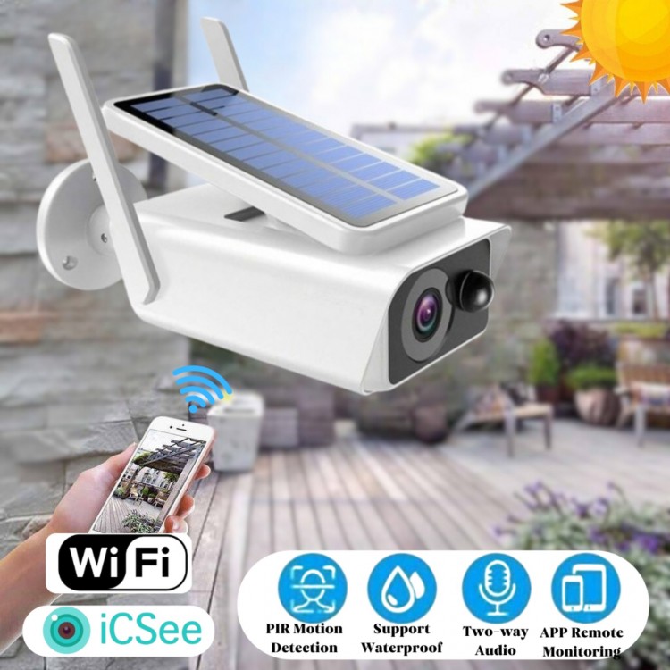 Водоустойчива соларна WiFi камера е идеална за поставяне на места, където е трудно окабеляването. Тя е снабдена с двойно захранване - чрез батерии и слънчев панел; няма захранващи кабели. Използват се 2 броя литиеви батерии, които могат да се сменят. Слънчевият панел се закрепя с подвижни скоби на място, където се огрява по-дълго време. Има възможност за промяна на ъгъла на осветляване. Камерата притежава вграден RIP сензор за детекция на хора. При преминаване на човешко същество видео записването се включва автоматично и изпраща известие ( предупреждение ) към мобилен телефон, с който камерата е свързвана.